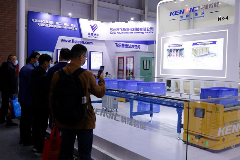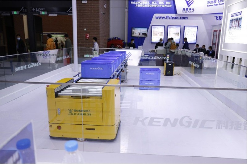 螞蟻機器人在此次展會現(xiàn)場進行無人化自主搬運的動態(tài)演示:在調(diào)度系統(tǒng)的指揮下,螞蟻自主研發(fā)的激光SLAM輥筒式料箱AGV自動搬運料箱與生產(chǎn)線對接,自動配送過程中能夠高效精準對接搬運線體,同時演示現(xiàn)場設(shè)置障礙物,AGV能夠自動識別障礙,避障繞行,完成貨物的實時運輸。螞蟻機器人的高效對接和精準避障滿足了醫(yī)藥行業(yè)在藥品種類多和環(huán)境復雜的背景下對安全頻繁轉(zhuǎn)運的配送需求。