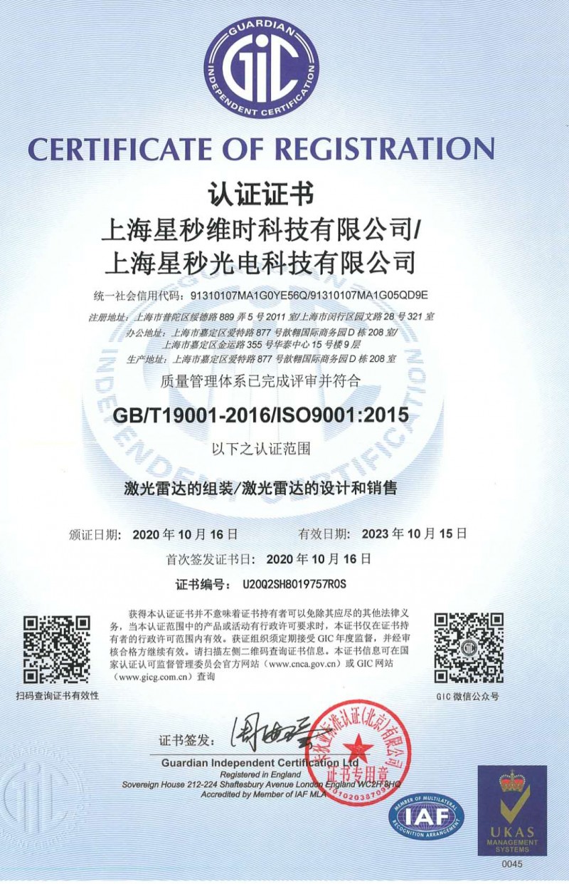 | 發(fā)證機(jī)構(gòu): | 卡狄亞標(biāo)準(zhǔn)認(rèn)證(北京)有限公司 | 發(fā)證時(shí)間 : | 2020-10-16 |