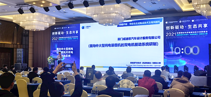 經過專家評審和現場答辯等環節,廈門威迪思從眾多競爭對手中脫穎而出,獲得了評審專家的高度認可與稱贊,最終榮獲“新能源汽車技術(先進電驅動)創新拉力賽創新獎”。