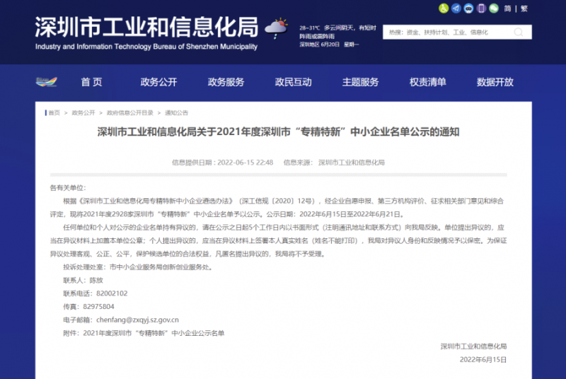 6月15日,深圳市工業和信息化局發布了《關于2021年度深圳市“專精特新”中小企業名單公示通知》。斯坦德機器人憑借在工業級移動機器人領域的技術實力、專業創新等方面優勢入選,榮獲2021年度深圳市“專精特新”企業認定稱號。