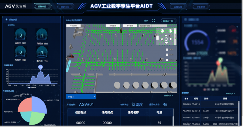 然而,小A的故事還沒有結(jié)束。基于艾吉威免費(fèi)贈(zèng)送的數(shù)字化工廠AIDT(艾吉威工業(yè)數(shù)字孿生)平臺(tái),小A可以做一些維護(hù)保養(yǎng)的事項(xiàng)。該平臺(tái)可采集每輛小千斤的所有信息,包括故障、速度、電量、任務(wù)等,可實(shí)現(xiàn)對(duì)所有機(jī)器人產(chǎn)品的實(shí)時(shí)監(jiān)控與故障排查,真正實(shí)現(xiàn)小千斤產(chǎn)品的遠(yuǎn)程運(yùn)維。
