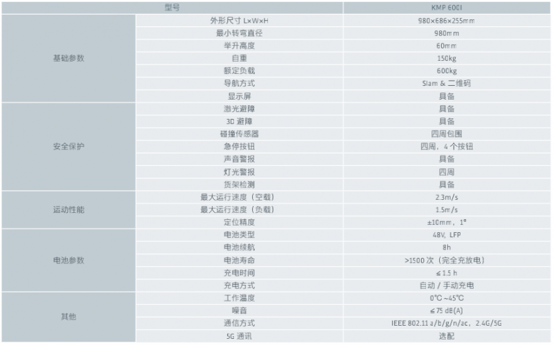 KMP 600I是基于德國先進的激光Slam導(dǎo)航技術(shù)打造的全新AMR產(chǎn)品,以智能靈活、穩(wěn)定高效、安全可靠為特征,賦能客戶智慧物流、智能制造升級,可廣泛應(yīng)用于3C電子、新能源、汽車、白色家電、醫(yī)藥、一般工業(yè)、電商物流等行業(yè)。