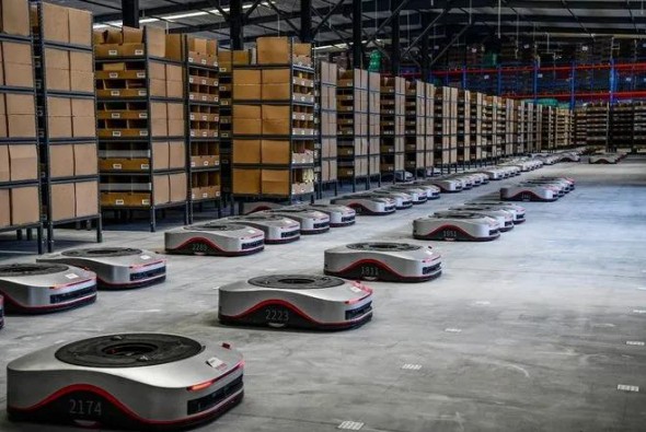 “地狼”是京東物流自主研發的一種典型的搬運式貨到人揀選系統,利用地狼AGV將貨架搬運至固定的工作站以供作業人員揀選。