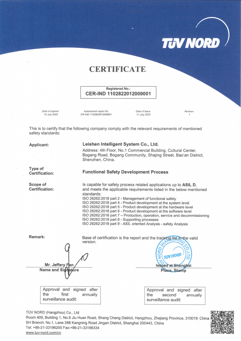 這對于鐳神智能未來建立汽車功能安全體系,具有里程碑式的意義。也是鐳神智能作為全球汽車供應鏈廠商實力的進一步認證。