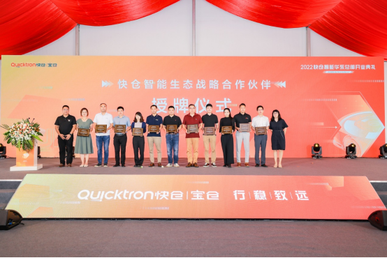 圖:快倉智能聯(lián)合創(chuàng)始人兼CTO倪菲介紹“鴻鵠”C56機(jī)器人產(chǎn)業(yè)協(xié)同,構(gòu)建移動機(jī)器人生態(tài)圈行業(yè)發(fā)展離不開產(chǎn)業(yè)鏈上下游的協(xié)同,快倉智能也正積極聯(lián)合上下游不同領(lǐng)域企業(yè),一起構(gòu)建移動機(jī)器人生態(tài)圈。在2022年度戰(zhàn)略生態(tài)伙伴授牌儀式上,快倉智能為激光雷達(dá)、減速機(jī)、驅(qū)動器、芯片等多個(gè)領(lǐng)域的合作伙伴頒發(fā)獎牌,未來,快倉智能將立足于自身產(chǎn)品技術(shù),以開放共贏的態(tài)度與生態(tài)圈企業(yè)聯(lián)合,更好的賦能終端應(yīng)用客戶。