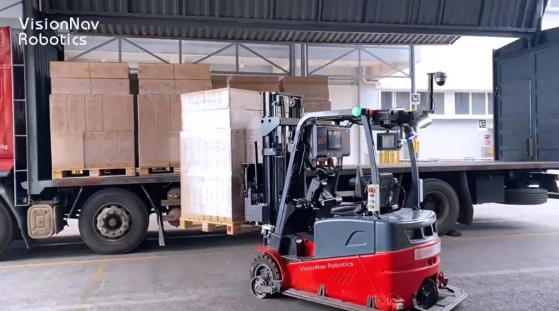 在面對飛翼車無人裝卸場景時(shí),未來機(jī)器人采用視覺+3D激光多種傳感器進(jìn)行復(fù)合定位,當(dāng)系統(tǒng)檢測到貨車停靠位置前后左右有偏差,無人叉車根據(jù)反饋得到的偏差數(shù)據(jù),調(diào)整叉車位姿尋找適宜取貨位置,根據(jù)感知檢測到車上貨物之間的縫隙距離,無人叉車判斷第一托取貨位置,開始卸貨。項(xiàng)目規(guī)范了物流流程,降低了貨損率。
