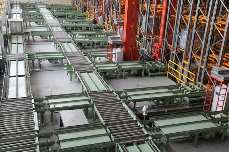 由鏈條輸送機(jī)和滾筒輸送機(jī)組成的環(huán)形輸送線,實(shí)現(xiàn)托盤輸送搬運(yùn)入庫(kù)自動(dòng)化,經(jīng)過(guò)站臺(tái)入庫(kù)的成品托盤會(huì)由輸送線輸送至對(duì)應(yīng)的立體庫(kù)巷道入口。
