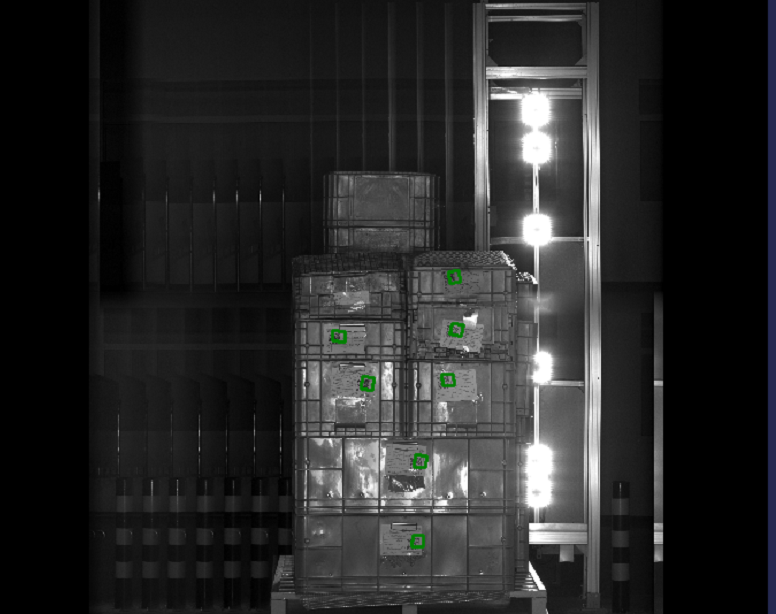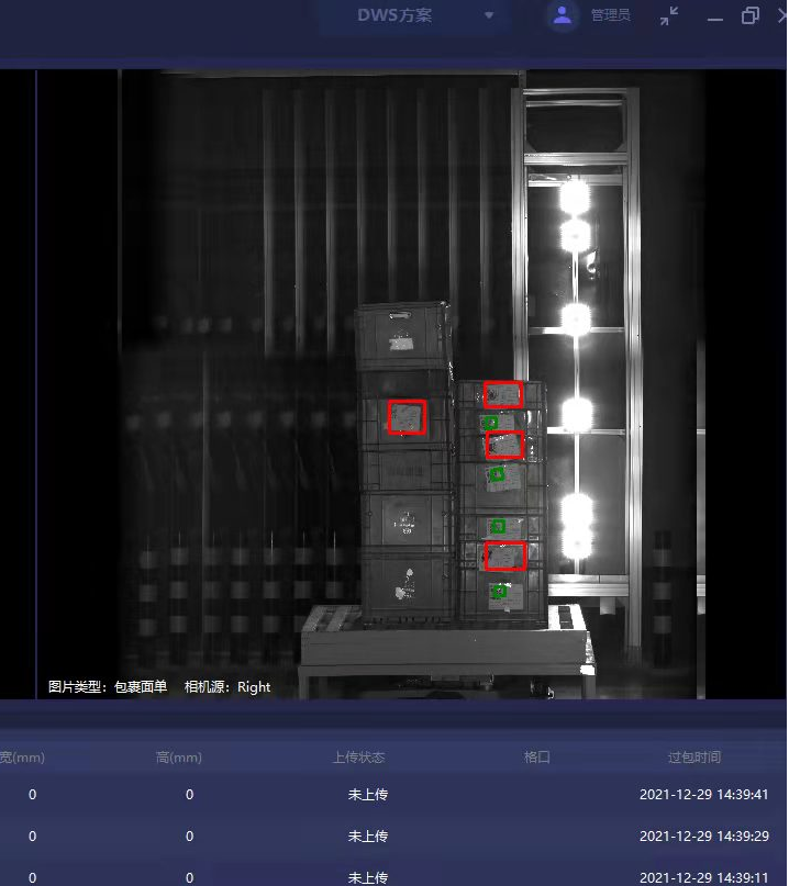 華睿科技通過追蹤讀碼相機畫面內貨物的移動,將所有相機采集的圖片進行標定、對比、融合,完整展示堆垛貨物讀碼情況。