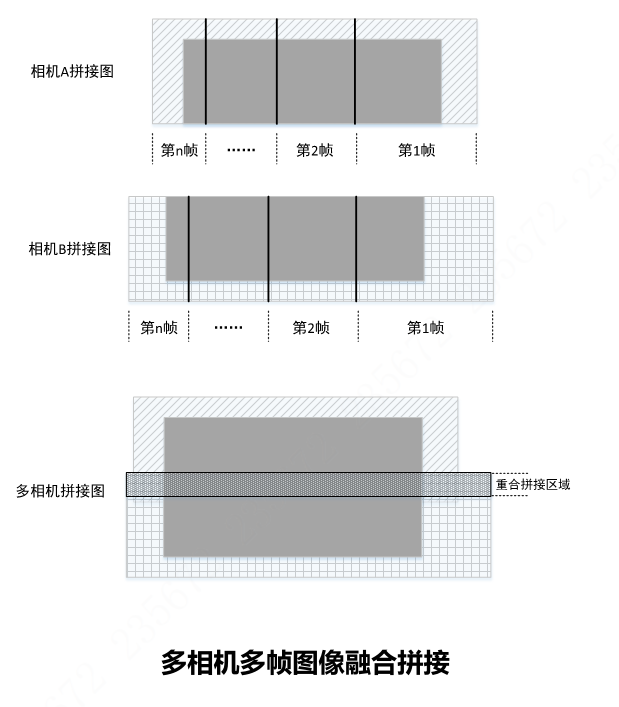 通過大景深相機融合先進拼圖算法, AGV在不同位置通過時,可精確計算不同相機之間的重合區域,進行準確的多相機拼接。