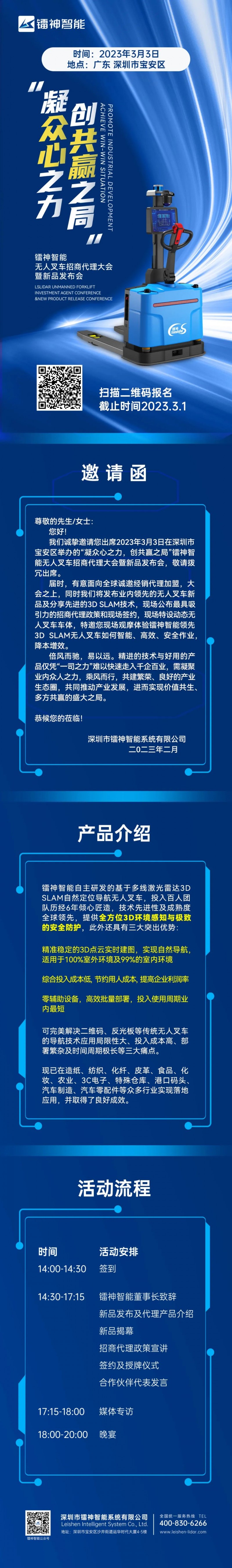 鐳神智能無人叉車招商代理大會暨新品發(fā)布會即將開幕!