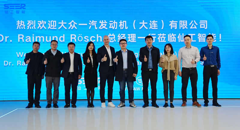 大眾一汽發(fā)動機(jī)總經(jīng)理 Dr. Raimund Rösch、總經(jīng)理助理韓露露、生產(chǎn)技術(shù)總監(jiān)宋百秋、生產(chǎn)機(jī)加經(jīng)理王向國、生產(chǎn)技術(shù)經(jīng)理曹殿廷等一行人蒞臨仙工智能總部參觀交流并參與簽約儀式。