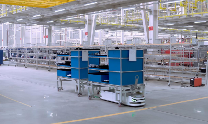 通過T1000潛伏牽引機器人及SPS上線機構(gòu),SPS料車全程無需人工干預,可實現(xiàn)從配料區(qū)到生產(chǎn)線上線工位,再由生產(chǎn)線下線工位返回配料區(qū)的全流程無人化運輸,從而緩解總裝車間的擁擠及混亂情況,精準輸送各區(qū)域所需零配件,提高生產(chǎn)效率。