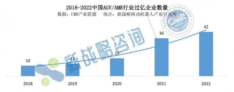 2022年度,中國(guó)市場(chǎng)AGV/AMR企業(yè)銷售額過(guò)億元的企業(yè)約42家,與2021年度的36家相比,新增了6家企業(yè)。
