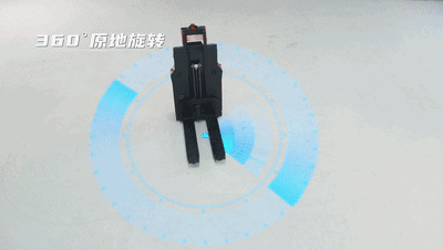 360度全方位運動,具備橫移,斜移,原地轉向等功能,最高速度達1.7m/s。