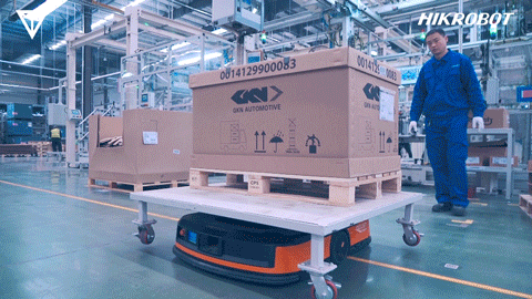 AMR運輸貨架,平均每天可完成300多項的物流搬運任務,搬運效率較之前人工叉車搬運得到顯著提升,而且避免了長時間工作后叉車操作人員因疲勞導致的搬運精度下降等問題;AMR以“貨到人”的方式將貨架運送到操作員身側,操作員無需頻繁離開工作位置,即可進行揀選,省時省力。