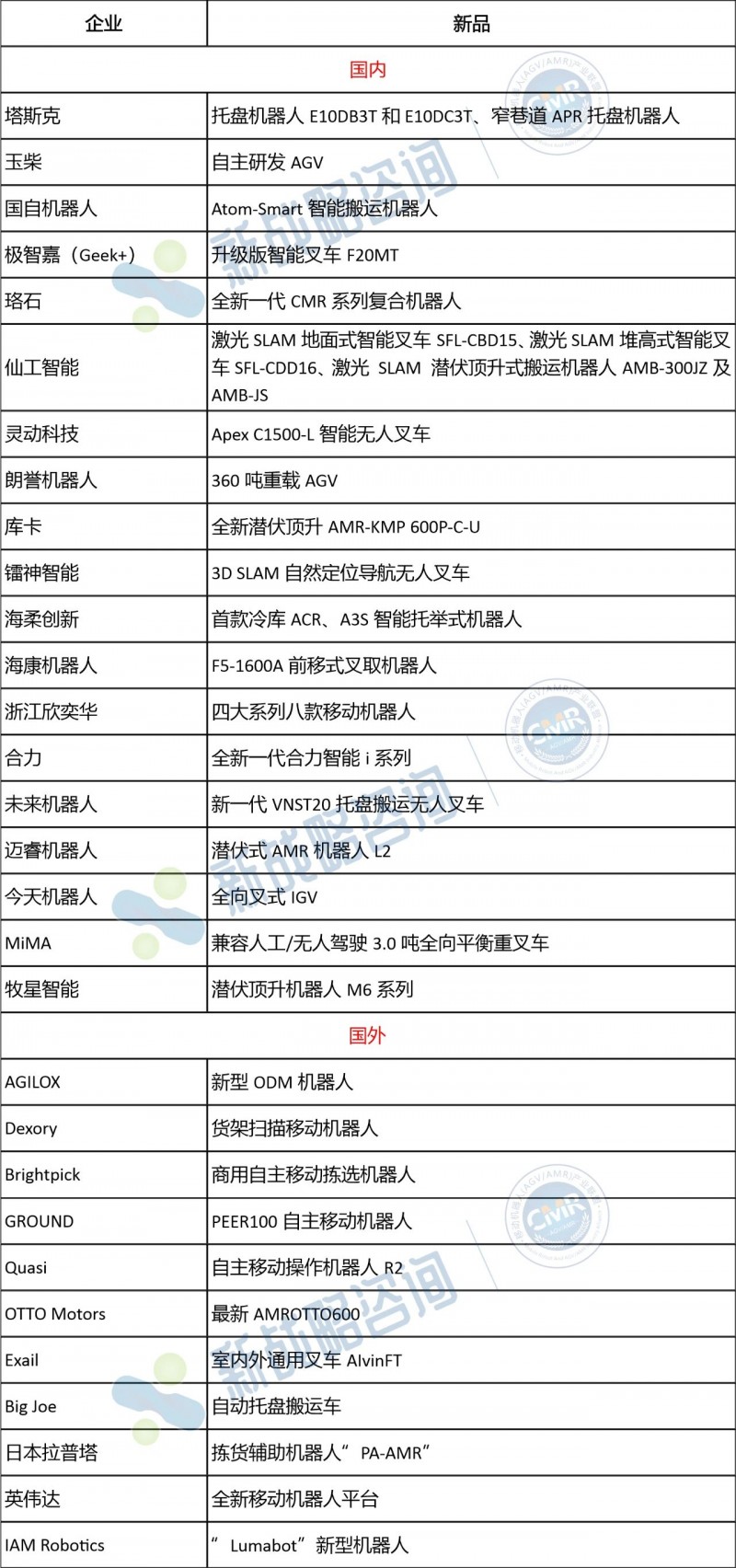 圖表:上半年AGV/AMR行業(yè)新品(不完全統(tǒng)計(jì))