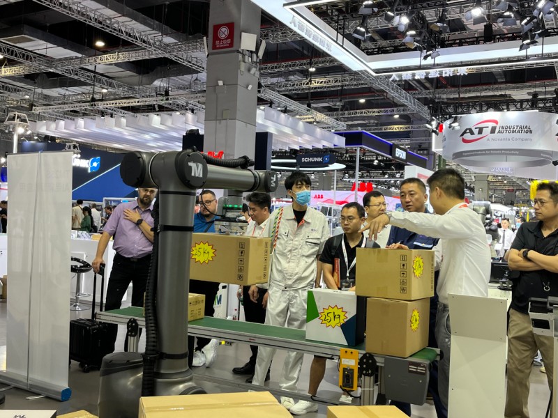 TM AI Cobot S系列產(chǎn)品線新增TM25S,負載提升至25公斤,可應對更多大型工件取放應用。與市場上其他 25 公斤級協(xié)作型機器人相比,除自身重量比較輕以外,還具有更長的臂展范圍。達明機器人內建視覺系統(tǒng)搭配外部 3D 相機,結合 3D 及 AI 智慧辨識技術,實時偵測混箱卸棧中箱體大小與位置信息,無需事先指定棧型,可隨意擺放,也可應付傾斜、緊貼或具有膠帶包覆等復雜情況。