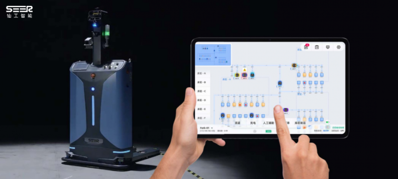 使用者可在平板上自定義起點和終點庫位,一鍵下單發(fā)起搬運任務(wù)。同時,根據(jù)業(yè)務(wù)需求,使用者也可一鍵操作調(diào)整任務(wù),實現(xiàn)庫位自由智能化搬運。
