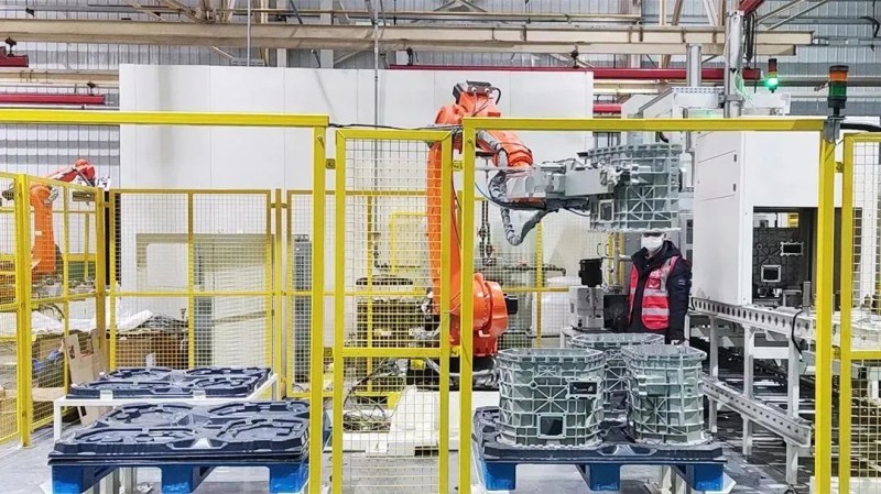 大型汽配企業的制動系統成品需進行下料裝盤,打包出庫。