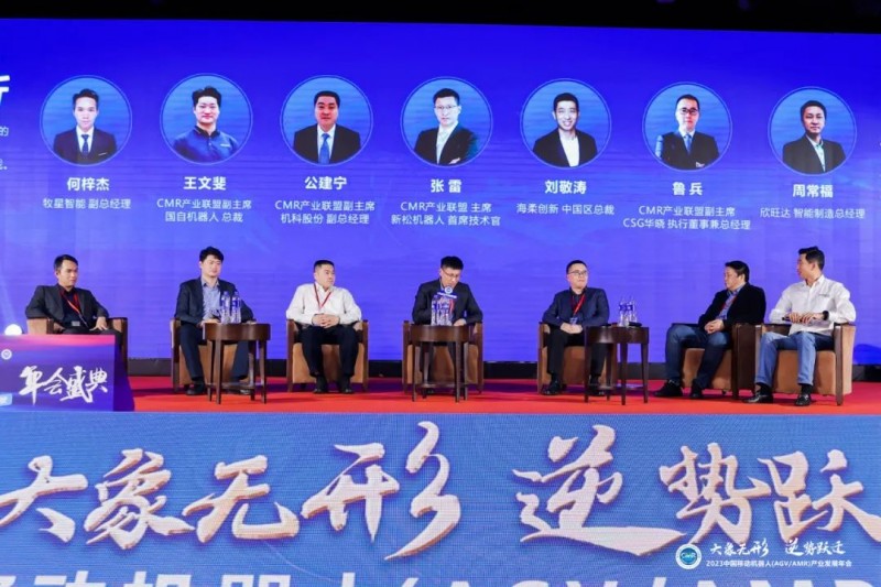 2023年12月13日,在“2023中國移動(dòng)機(jī)器人(AGV/AMR)產(chǎn)業(yè)發(fā)展年會(huì)-AMR新技術(shù)融合專場(chǎng)”的圓桌討論環(huán)節(jié),CMR產(chǎn)業(yè)聯(lián)盟主席、新松機(jī)器人首席技術(shù)官張雷,CMR產(chǎn)業(yè)聯(lián)盟副主席、國自機(jī)器人總裁王文斐,CMR產(chǎn)業(yè)聯(lián)盟副主席、機(jī)科股份副總經(jīng)理公建寧,CMR產(chǎn)業(yè)聯(lián)盟副主席、CSG華曉執(zhí)行董事兼總經(jīng)理魯兵,海柔創(chuàng)新中國區(qū)總裁劉敬濤,牧星智能標(biāo)品事業(yè)部總經(jīng)理何梓杰以及欣旺達(dá)智能制造總經(jīng)理周常福圍繞“制造、物流智能化升級(jí)過程中移動(dòng)機(jī)器人參與的廣度與深度、中國移動(dòng)機(jī)器人全球化進(jìn)程中的機(jī)會(huì)與挑戰(zhàn)、直面行業(yè)弊端,如何理性參與行業(yè)競(jìng)合”等本年度熱點(diǎn)話題,分享企業(yè)在新業(yè)態(tài)下的發(fā)展思路與成功經(jīng)驗(yàn)。