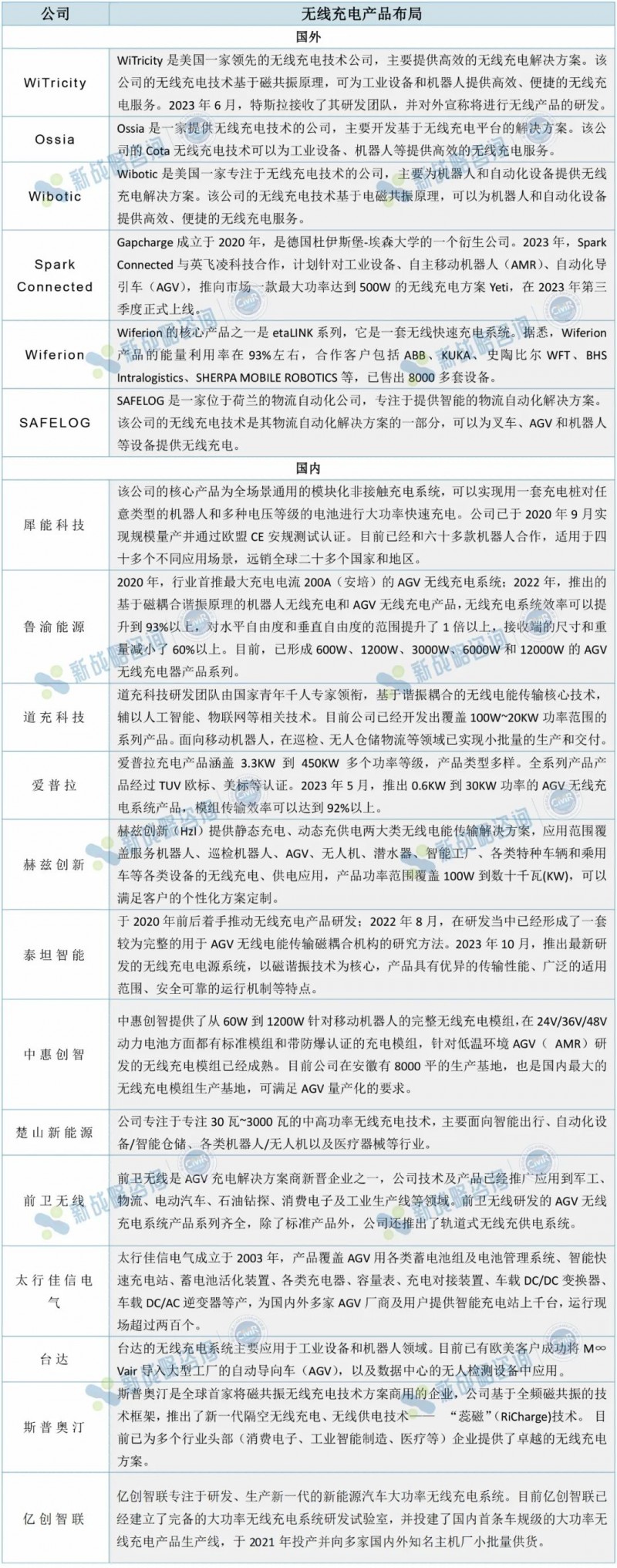 從競爭主體來看,目前國內(nèi)活躍在工業(yè)制造領(lǐng)域的無線充電企業(yè)主要分為兩類,一類是從成立之初便耕耘于無線充電板塊的企業(yè),以魯渝能源、犀能、道充科技等企業(yè)為代表,這類企業(yè)在無線充電領(lǐng)域積累了深厚的底蘊(yùn),擁有強(qiáng)大的技術(shù)儲(chǔ)備;另一類是從傳統(tǒng)充電機(jī)、蓄電池切入無線充電,實(shí)現(xiàn)雙賽道并驅(qū)的企業(yè),以泰坦智能、愛普拉等企業(yè)為代表,這些企業(yè)對于移動(dòng)機(jī)器人應(yīng)用場景有著深刻理解,并擁有前期的市場優(yōu)勢和資源渠道。
