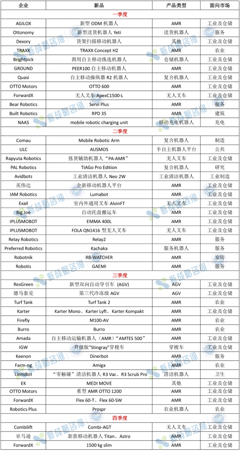 表:2023年國外移動機器人新產品(根據公開信息整理,如有遺漏,請指正!)