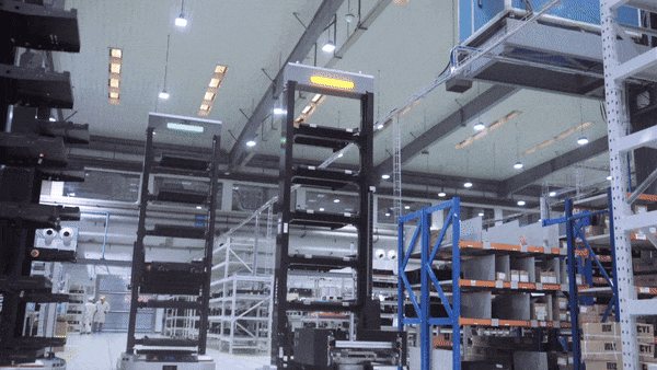 在工廠投入潛伏機器人(LMR)與料箱機器人(CTU),覆蓋無人倉、電子倉、集配區、整柜生產區、部件生產區等業務場景,參與物料存儲、分揀、接駁、配送等工作,實現物料的全廠智能化配送。
