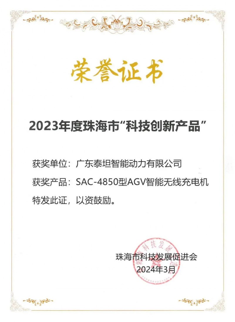 3月29日下午,“創(chuàng)新珠海”科技獎(jiǎng)暨科技創(chuàng)新評(píng)優(yōu)頒獎(jiǎng)典禮在珠海舉行。來自市科技創(chuàng)新局、市工業(yè)和信息化局、市民政局、市科協(xié)等有關(guān)部門負(fù)責(zé)人,企業(yè)、高校、科研院所和社會(huì)組織代表共計(jì)200余人參會(huì)。廣東泰坦智能動(dòng)力有限公司憑借其基于磁耦合諧振式無線充電技術(shù)的自主全智能AGV充電系統(tǒng)研發(fā)及產(chǎn)業(yè)化項(xiàng)目獲得了2023年度珠海科學(xué)技術(shù)獎(jiǎng)-自主創(chuàng)新促進(jìn)獎(jiǎng)三等獎(jiǎng)以及2023年度珠海市科技創(chuàng)新產(chǎn)品獎(jiǎng)。