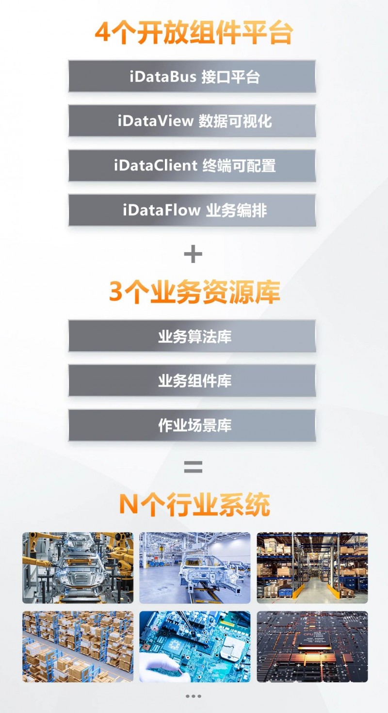 基于4個開發組件,3個可擴展的資源庫,形成 N個行業系統,iWMS行業功能可做到即插即拔,不同行業的功能互聯互通,比如3C常見的按箱管理可以應用到汽車行業,汽車常見的排序揀選也可應用于3C行業。