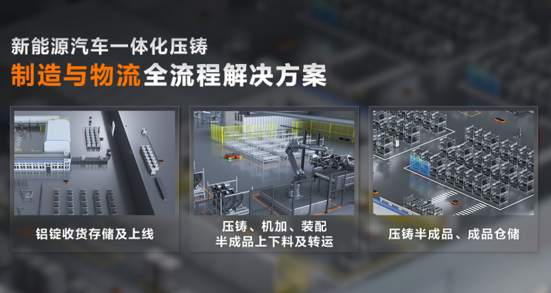 隨著一體化壓鑄新工藝的不斷成熟和普及,新能源汽車主機(jī)廠也面臨著諸多痛點,包括勞動強(qiáng)度大、作業(yè)安全問題,以及高節(jié)拍生產(chǎn)的要求。面對這些難題,海康機(jī)器人以AMR、機(jī)器視覺及強(qiáng)大的平臺軟件為載體,推出新能源汽車一體化壓鑄制造與物流全流程解決方案。