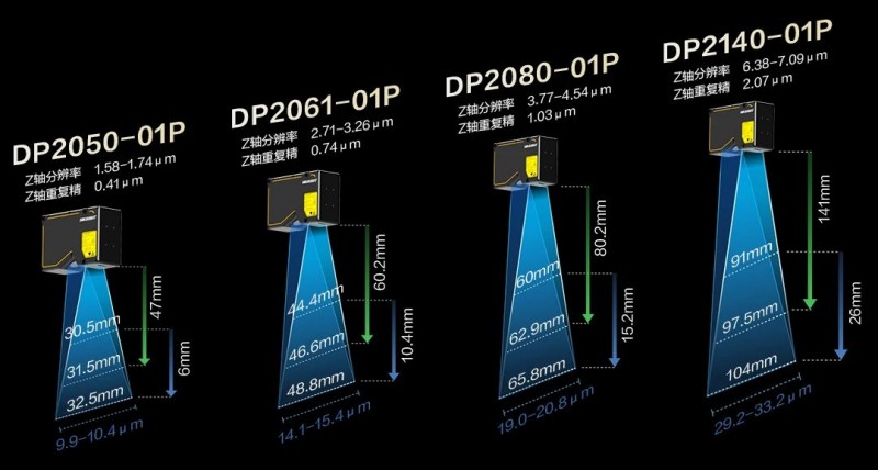 DP2060、DP2120、DP3060、DP3120小視野激光輪廓傳感器新增紅光版本,可以有效解決拼接場景中相同波段干擾的問題,同時,針對小視野檢測場景,小尺寸吸光材質的工件也能獲得優異成像。