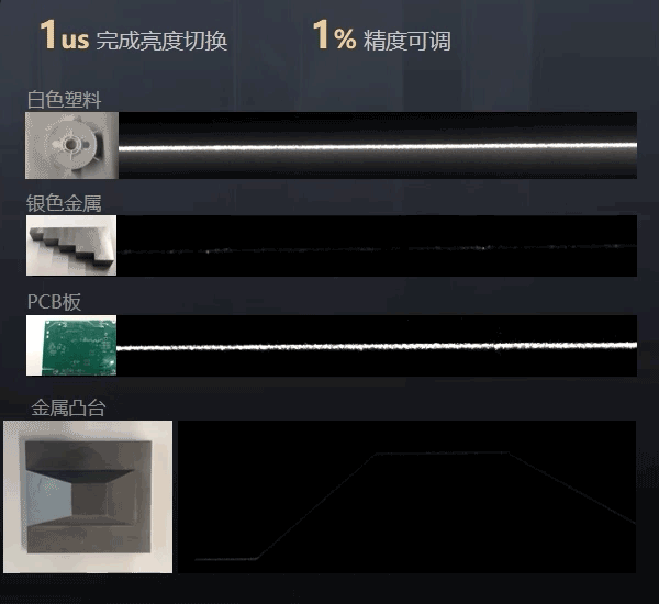 DP2000、DP3000 2.0版本支持激光自動控制,降低相機對不同材質調節參數的難度,實現參數自適應調節。