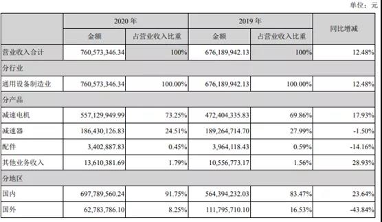 從年報來看,中大力德2020年國內業務收入6.98億元,同比增長23.64%;國外業務收入0.63億元,同比下滑43.84%。境外業務下滑明顯,主要原因是疫情原因高毛利率的海外訂單收到影響,公司海外業務占比從19年的16.53%下降到20年的8.25%。