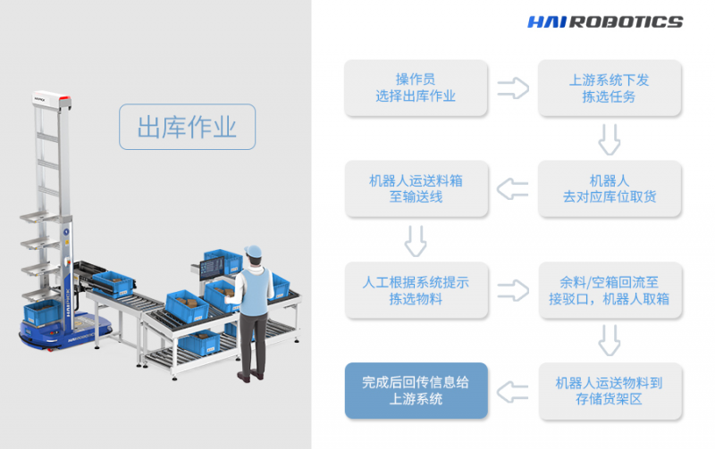 出庫:采用輸送線工作站的方式,提高出庫揀選友好性,提高響應(yīng)速度。