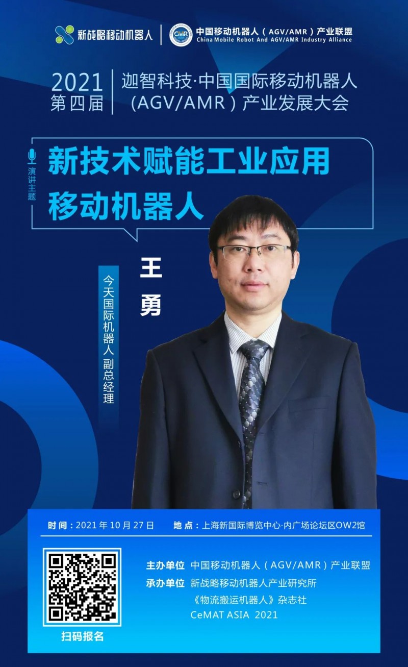 5G外,今天國際機器人還在探索哪些新技術?10月27日,在中國移動機器人(AGV/AMR)產業聯盟主辦的《第四屆國際移動機器人大會》上,今天國際機器人副總經理王勇將帶來“新技術賦能工業應用移動機器人”主題演講,敬請期待!