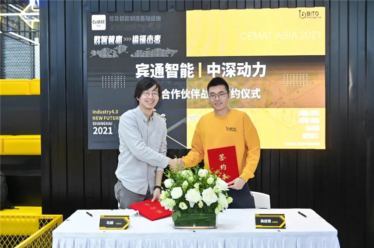 在展會現場,BITO分別與快倉智能、中深動力這兩家科技新銳企業舉行了生態合作伙伴戰略簽約儀式,希望通過合作擴大雙方的交流、加強雙方的緊密合作伙伴關系,互惠共贏、共謀發展、強強聯合、優勢互補和資源整合,打造更強大的制造業新生態,為中國的智能制造產業升級助力。