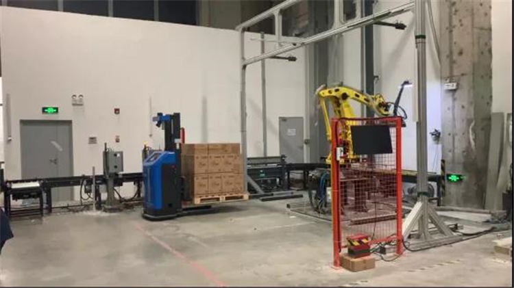 快遞行業(yè)具有貨物重量輕,時效性高的特性,聯(lián)核為客戶匹配1.6噸的堆垛型無人叉車,通過著重優(yōu)化車輛搬運(yùn)的平順性和工位上碼垛的準(zhǔn)確性,車輛在接收到出庫任務(wù)時,自動從立體庫搬運(yùn)貨物至機(jī)械臂,機(jī)械臂通過揀選指令,將貨物從托盤轉(zhuǎn)至輸送線,揀選任務(wù)完成后,無人叉車自動從機(jī)械臂工位將空托盤回收,實(shí)現(xiàn)機(jī)械臂、輸送線、立體庫和無人叉車的聯(lián)動效果,達(dá)到現(xiàn)場運(yùn)營的預(yù)期。
