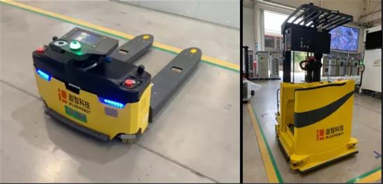 圖:迦智叉車AGV電力設(shè)備車間應(yīng)用