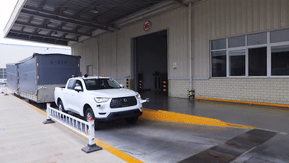 基于廠內(nèi)智能化物流設(shè)備的聯(lián)動,無人駕駛物流車還可進(jìn)行自主裝卸貨、散料上貨等操作,同時基于拖斗精準(zhǔn)運(yùn)動學(xué)模型,它能夠?qū)崿F(xiàn)帶拖斗倒車,并保證倒車位置精度,實現(xiàn)拖斗精準(zhǔn)對接裝卸平臺,提升裝卸貨效率。