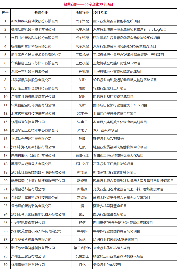 為了更好的宣導(dǎo)和展示從91年國產(chǎn)AGV落地應(yīng)用以來在各行各業(yè)的經(jīng)典案例,以及將案例與技術(shù)相結(jié)合,凸顯行業(yè)前瞻技術(shù)的論文集萃。中國移動機(jī)器人(AGV/AMR)產(chǎn)業(yè)聯(lián)盟與新戰(zhàn)略移動機(jī)器人產(chǎn)業(yè)研究所聯(lián)合出版了《中國工業(yè)應(yīng)用移動機(jī)器人經(jīng)典案例匯編及技術(shù)發(fā)展論文集(2021版)》。具體入選案例名錄如下: