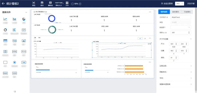 DataView提供豐富多樣的元件庫,支持用戶自定義配置頁面布局,關(guān)聯(lián)數(shù)據(jù)源后可動(dòng)態(tài)展示可視化頁面。