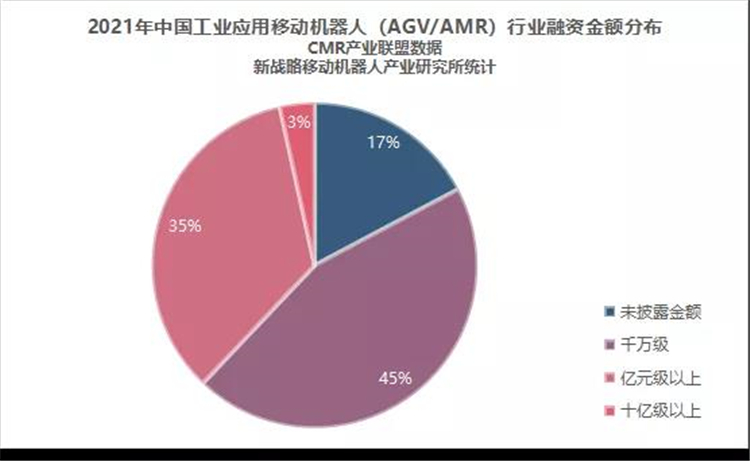 圖表:2021年中國工業(yè)應(yīng)用移動機(jī)器人(AGV/AMR)行業(yè)融資金額分布