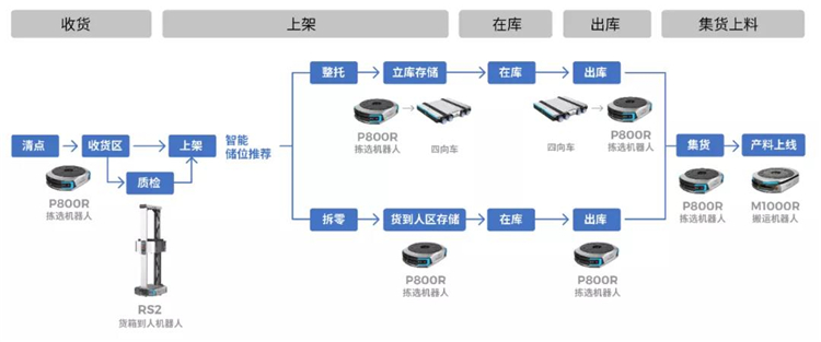 4.針對(duì)制造業(yè)的需求特點(diǎn),極智嘉在該項(xiàng)目揀貨環(huán)節(jié)中創(chuàng)新應(yīng)用了“反向揀選”技術(shù),即:系統(tǒng)提示揀選員從整托物料中需取出的物料數(shù)量,余下的整托物料由機(jī)器人托至集貨區(qū)。據(jù)介紹,這是業(yè)內(nèi)該創(chuàng)新技術(shù)的首次應(yīng)用落地,大幅提高了制造場(chǎng)景下的出庫(kù)揀選效率。