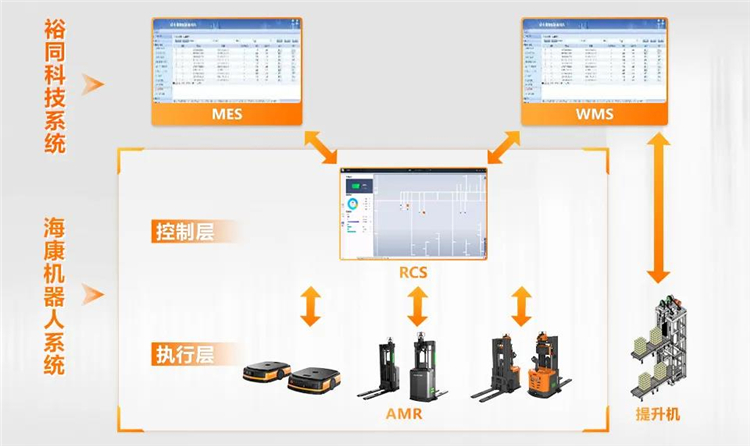 機(jī)器人控制系統(tǒng)RCS 無縫對(duì)接裕同的WMS以及MES系統(tǒng),對(duì)接提升機(jī)進(jìn)行跨樓層任務(wù),24 小時(shí)全方位管理AMR的運(yùn)行狀態(tài)和路徑規(guī)劃。AMR穿梭在原材料倉庫、生產(chǎn)車間、成品倉庫,用自動(dòng)化、智能化手段,簡(jiǎn)化規(guī)范了現(xiàn)場(chǎng)工藝流程,高效完成各類物流任務(wù)。