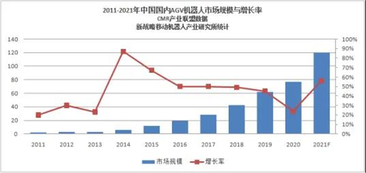 數據來源:CMR產業聯盟,新戰略移動機器人產業研究所(注:2021年年度數據以最終發布為準,目前預測120億元)